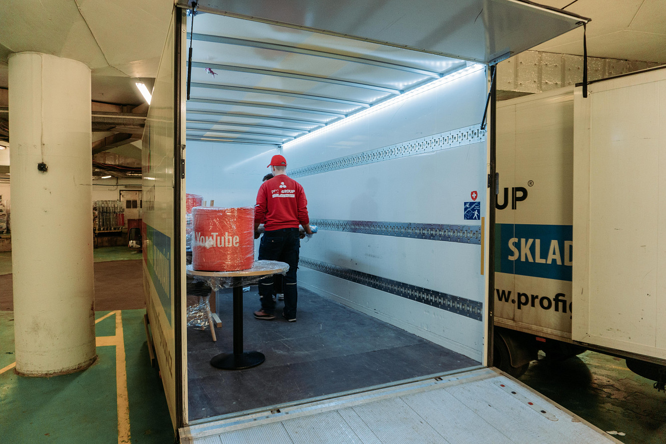 Konečně je pohovka umístěna ve stěhovacím voze. Nyní přichází na řadu správné upevnění pohovky. K tomu použijte popruhy s ráčnami. Pamatujte, že pohovka se nesmí ve voze hýbat. Upevněte ji pevně, stabilně a zároveň šetrně, aby se mechanicky nepoškodil rám či kostra pohovky.